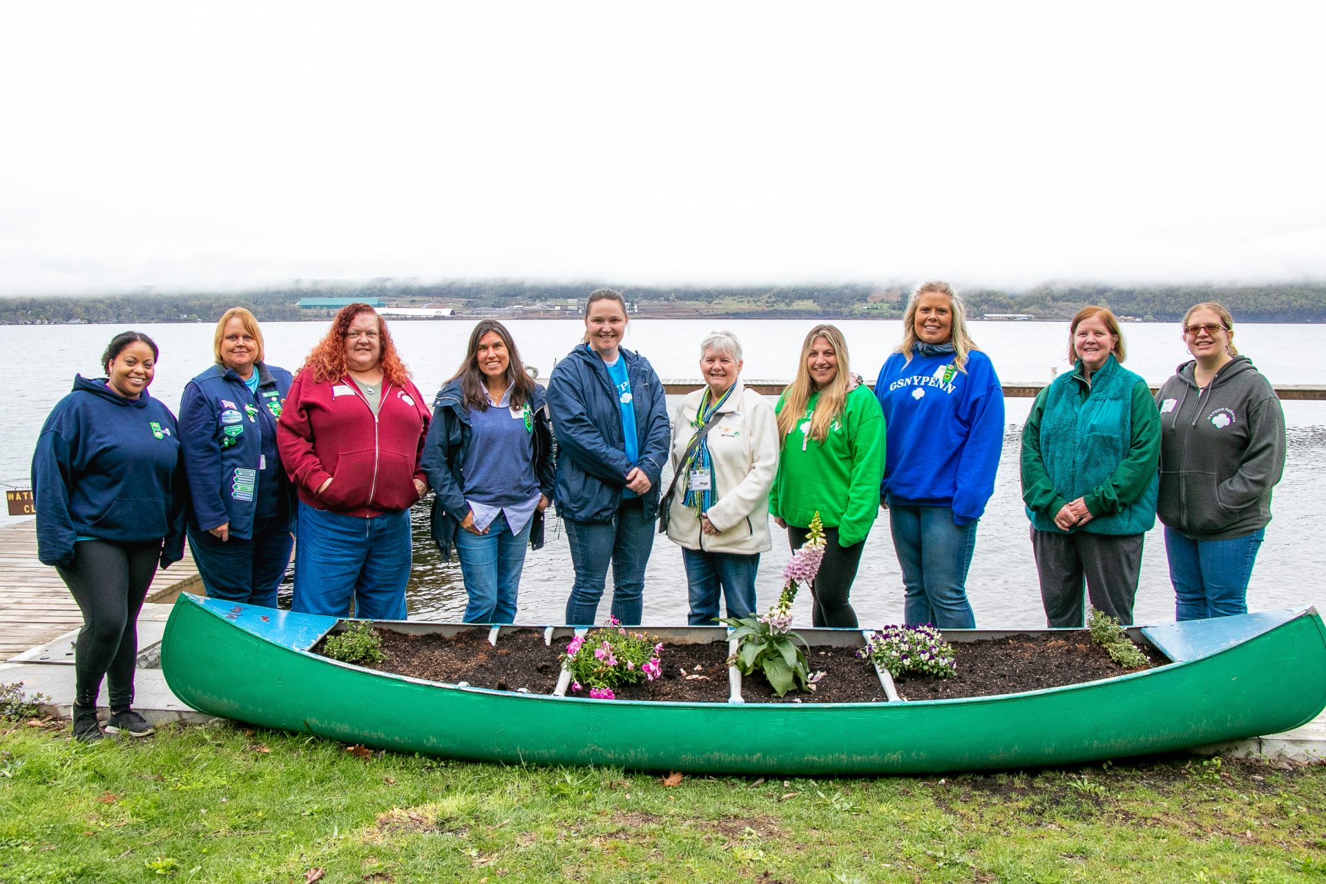 GSNYPENN Board Members attend the council’s Annual Meeting in May at Camp Comstock in Ithaca, N.Y. (L-R): Tiffany Alvarez Smith, Tamara Harris, Judi Dixon, Luana Lovenguth, Michelle McCabe-Szczepanski (former member), Debbie Calkins, Faith Vavra, Amanda Sprague (former member), Kathy Burke Barry and Karen Roth.