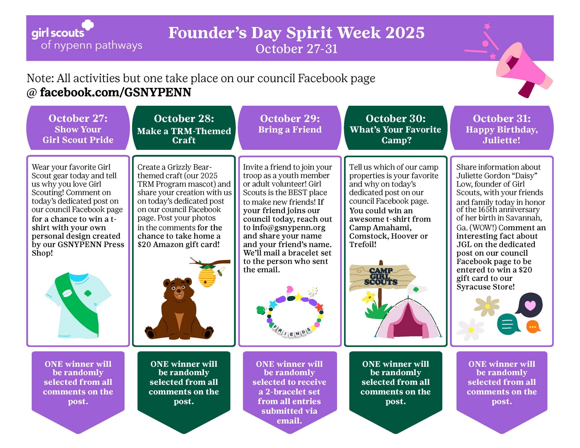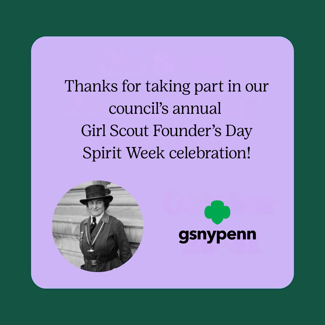 Our council's annual celebration honors the birth of Girl Scouts' founder, Juliette Gordon Low, on October 31, 1860, in Savannah, Ga. View this year's activity calendar and special incentives.